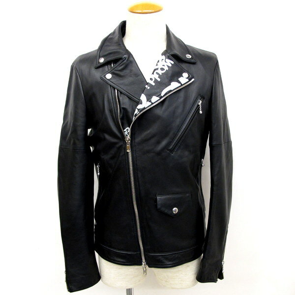 attack the mind 7 アタック ザ マインドセブン アウター ライダースジャケット ATMJ029 ブラック ホワイト サイズ3 ダブルライダース メンズ 2017AW ラムレザー プリント T東大阪店【中古】
